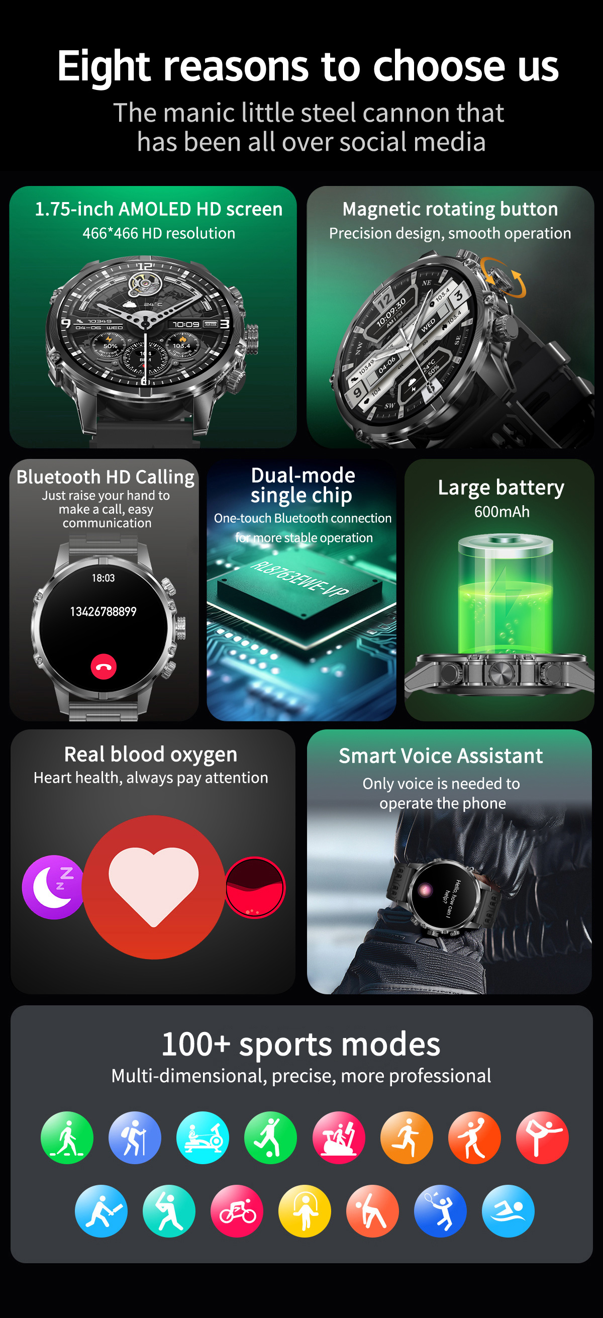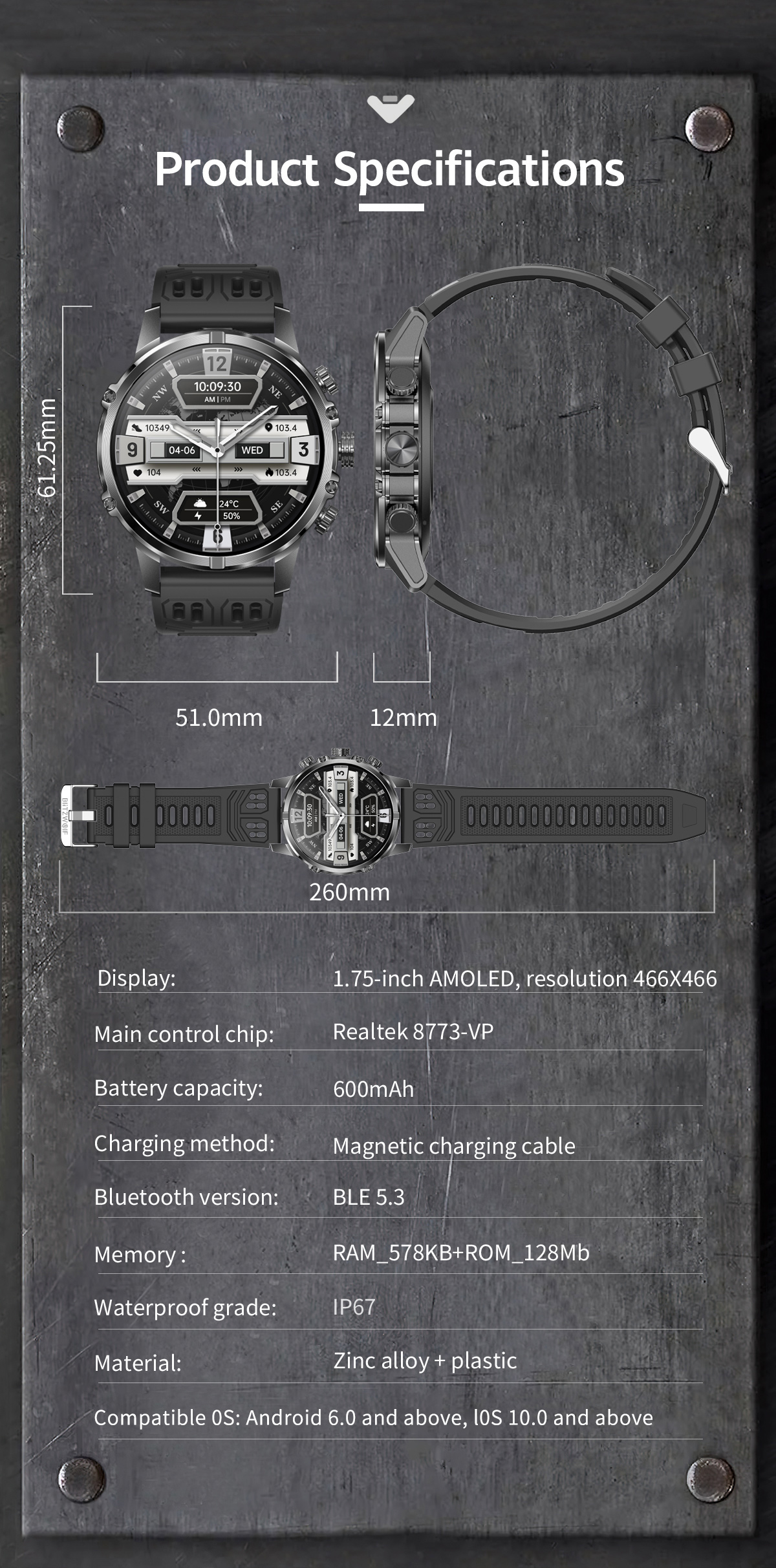 Note: Non medical equipment. The health test function is for reference only and cannot be used for medical purposes.