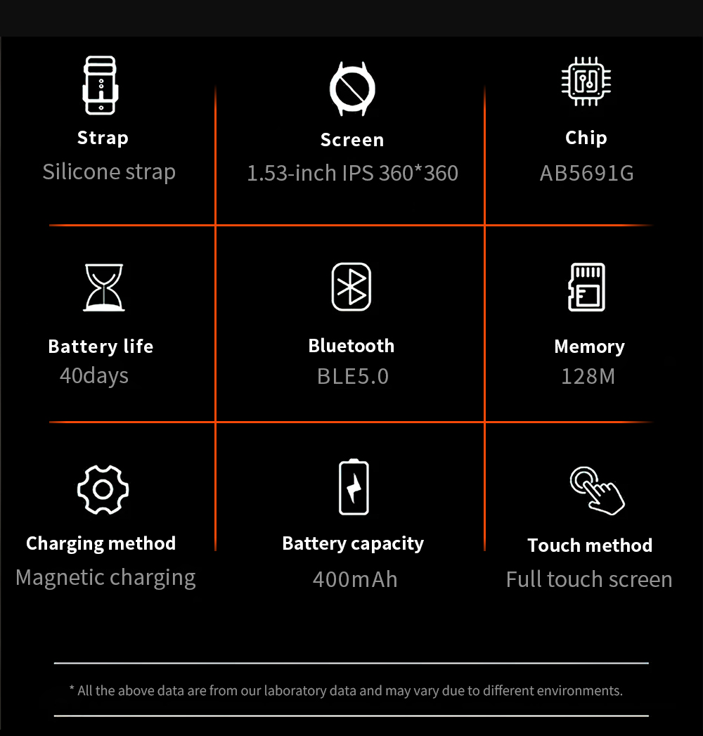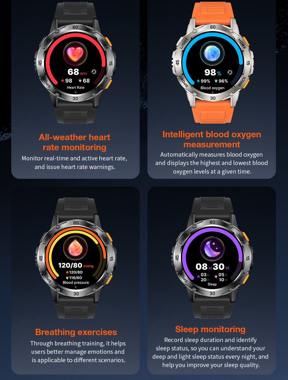 Note: Non medical equipment. The health test function is for reference only and cannot be used for medical purposes.