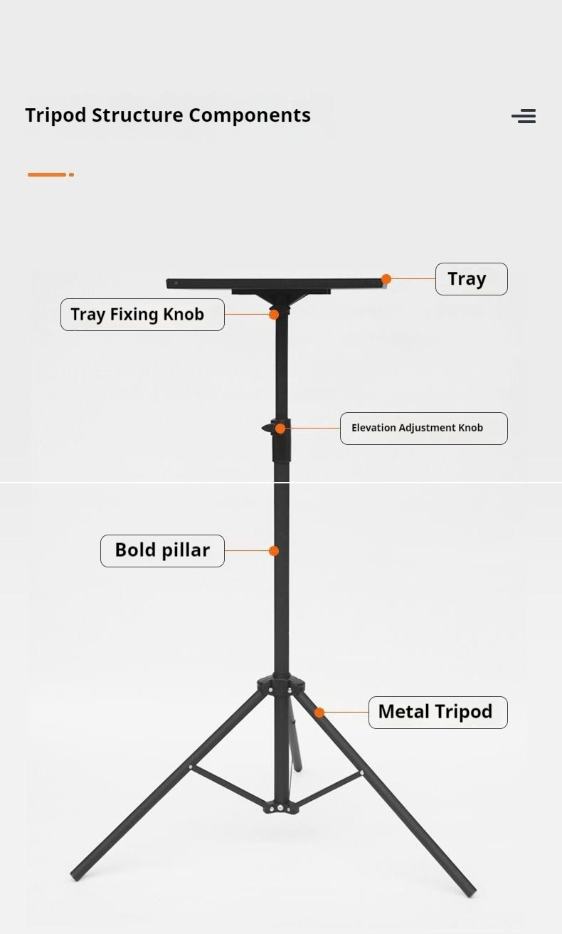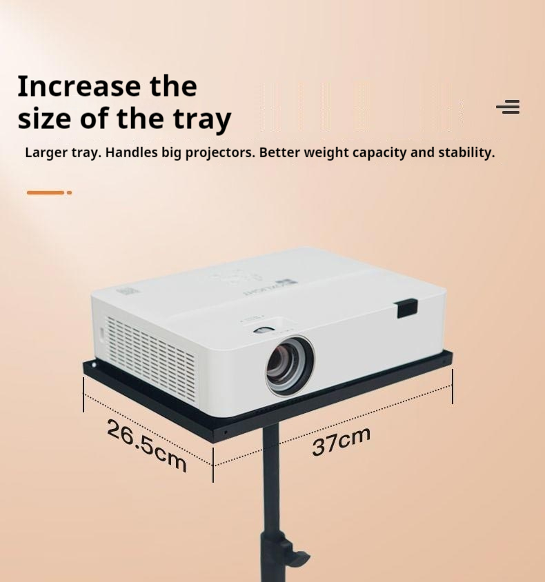 2. Wide Tray Support: Features a large metal tray sized at 37cm x 26.5cm to securely hold projectors or other equipment.