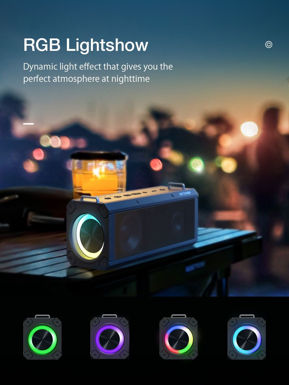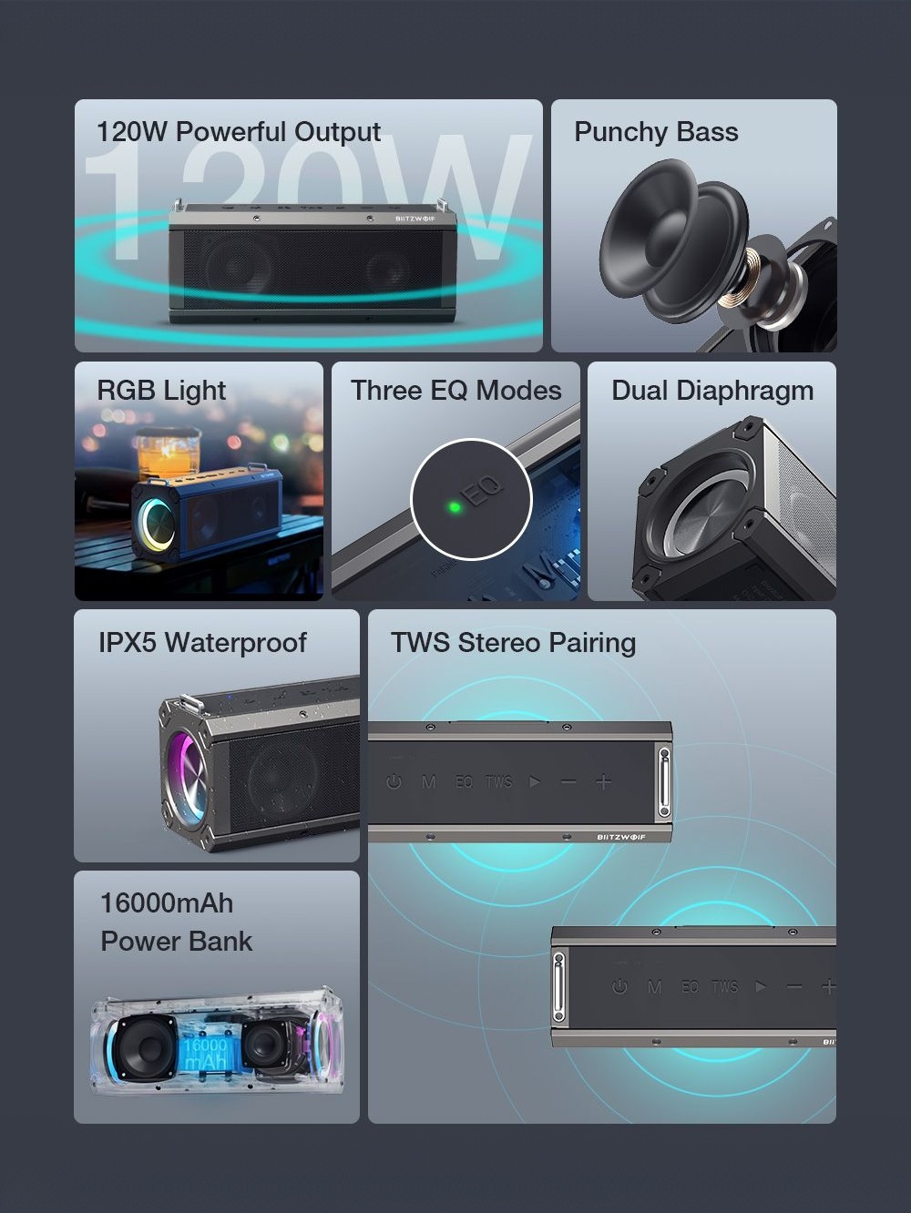 BlitzWolf® BW-WA3 Pro 120W Portable Bluetooth Speaker – Deep Bass, Quad Drivers, RGB Lights, TWS, 16000mAh Power Bank – Black - Buyme24seven