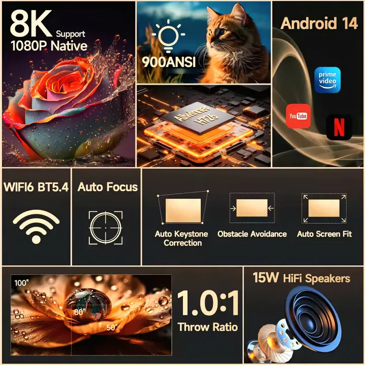 HY350, 580ANSI, 12000Lumens, Android11 4K 1920*1080P Wifi6 Projector