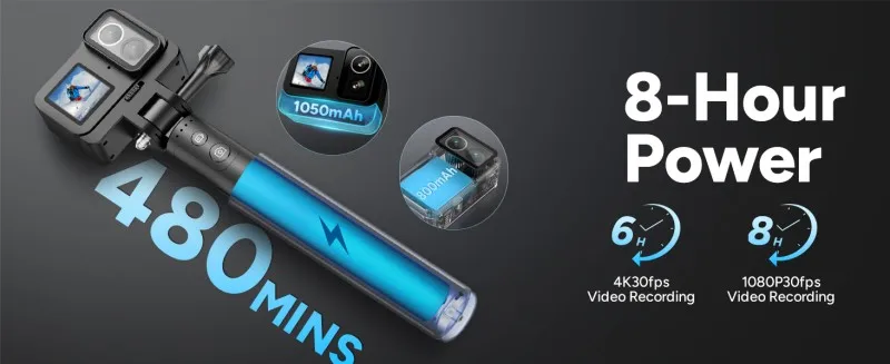 🔋 8H Extended Recording – 1100mAh battery supports up to 200 mins at 1080P; record while charging